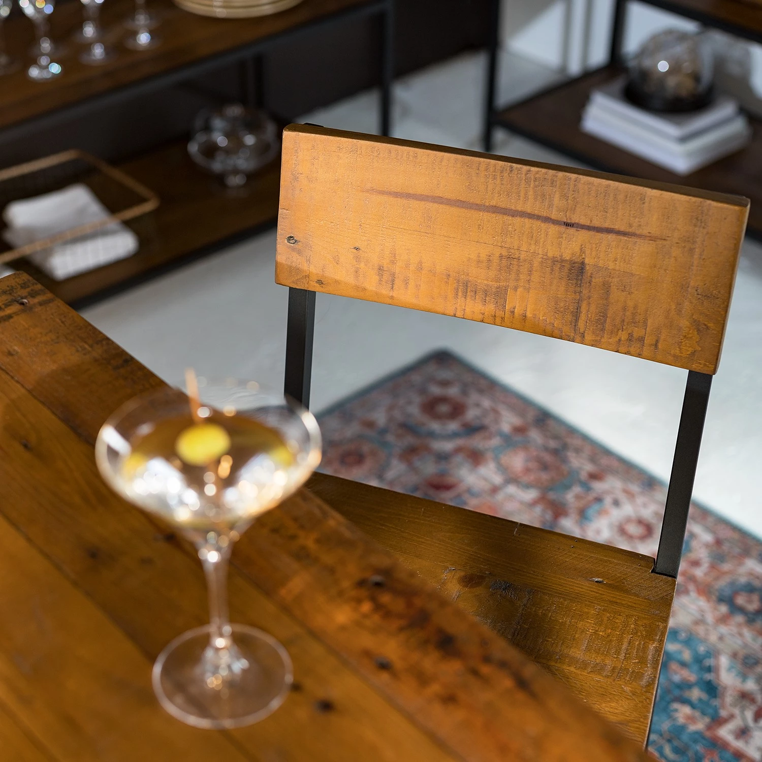 - Assise et dossier : pin recyclé verni