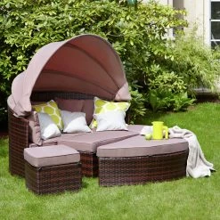 Merxx Salon de jardin modulable Riva – Polyrotin / Textile marron Taupe
