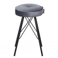 Maison Belfort Chaise de bar Nola – Tissu – Chêne massif – Gris foncé / Chêne foncé